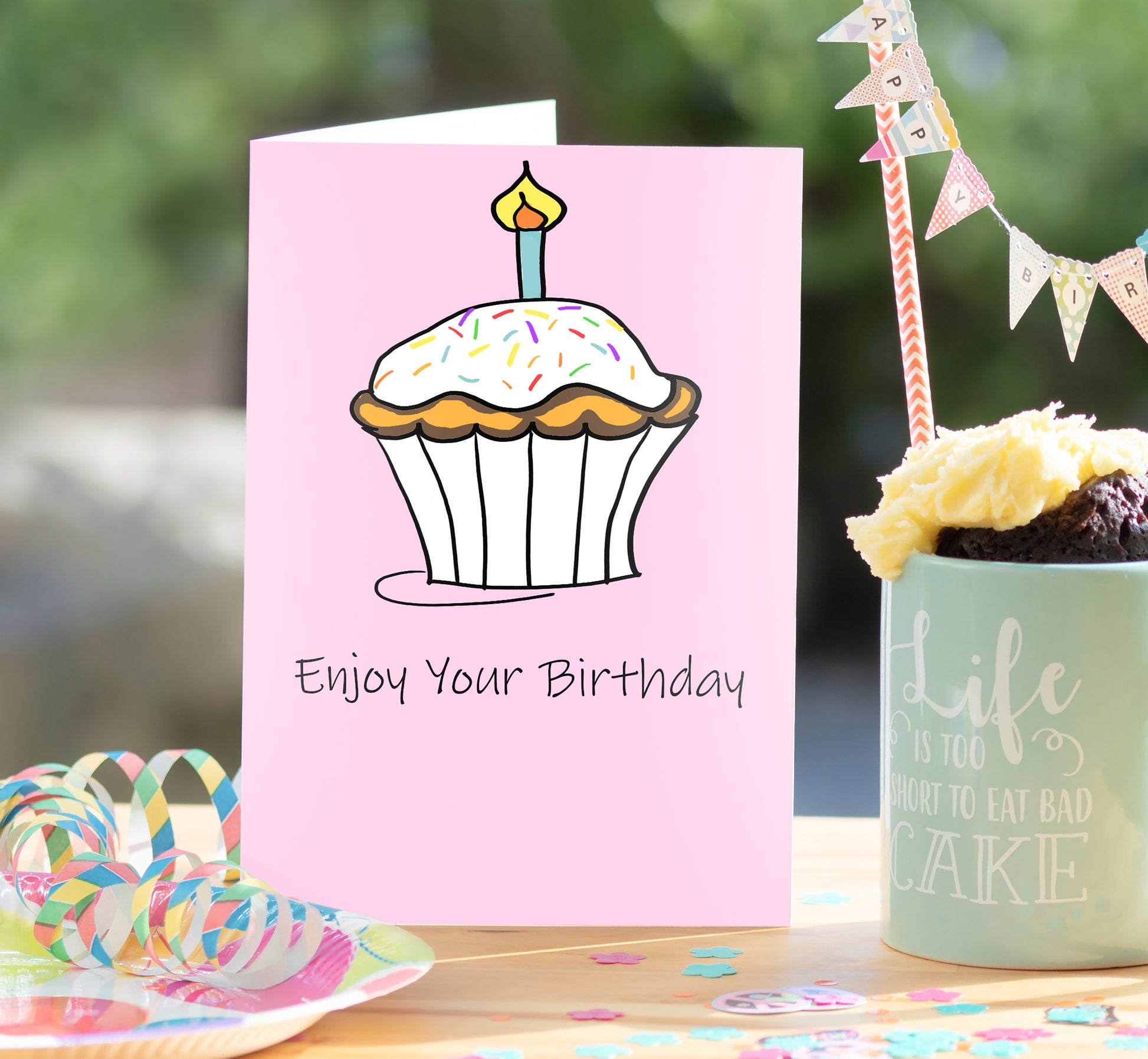 High quality colour image printed onto front of premium 400gsm uncoated folded card finished size 148x210mm (Blank inside & back)